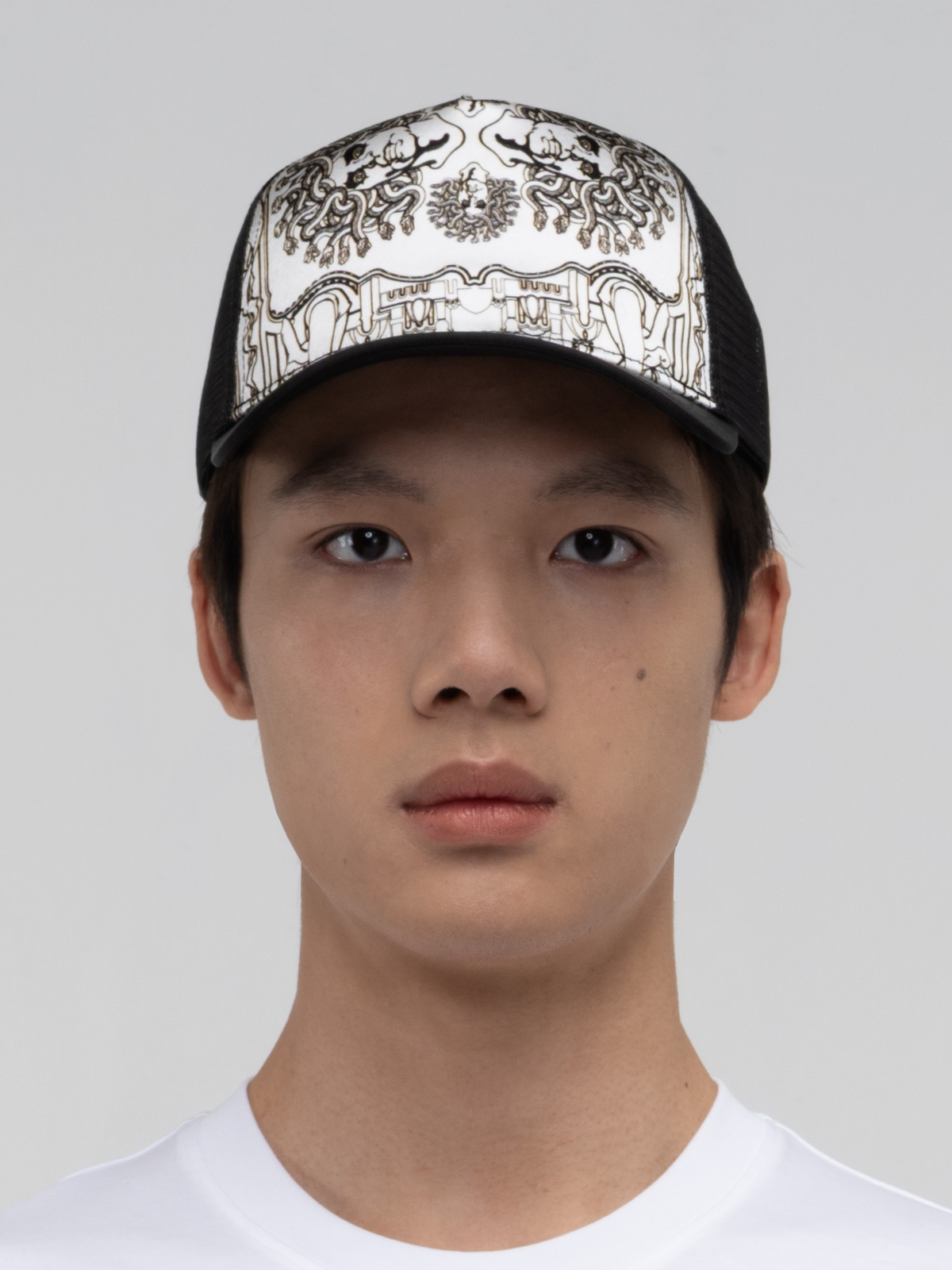 This collection of 5-panel ball caps showcases iconic designs from our archive, blending luxury with bold artistry. Crafted from premium materials and prints, each cap features a sleek, structured silhouette, making it a statement accessory that redefines casual style.