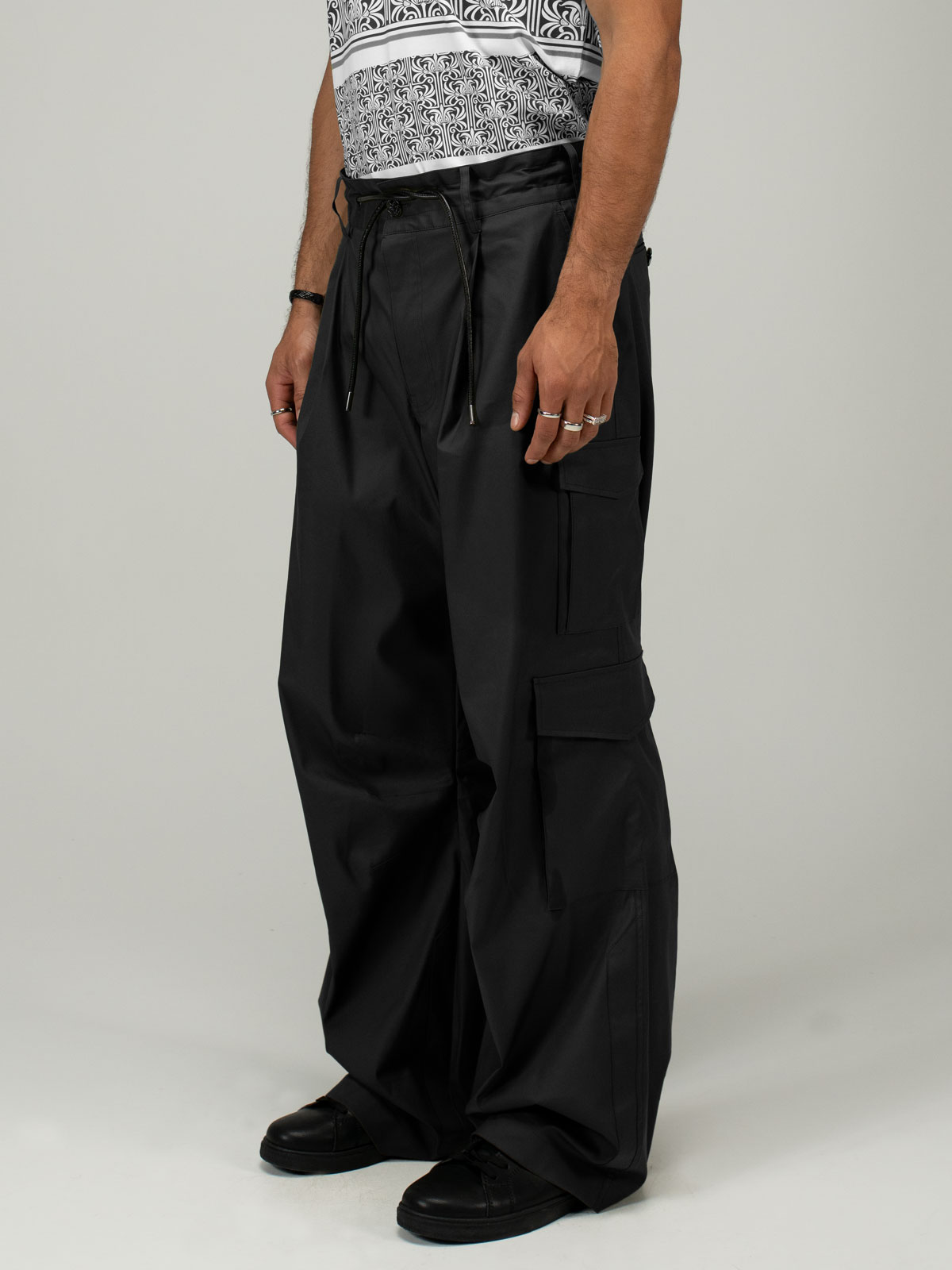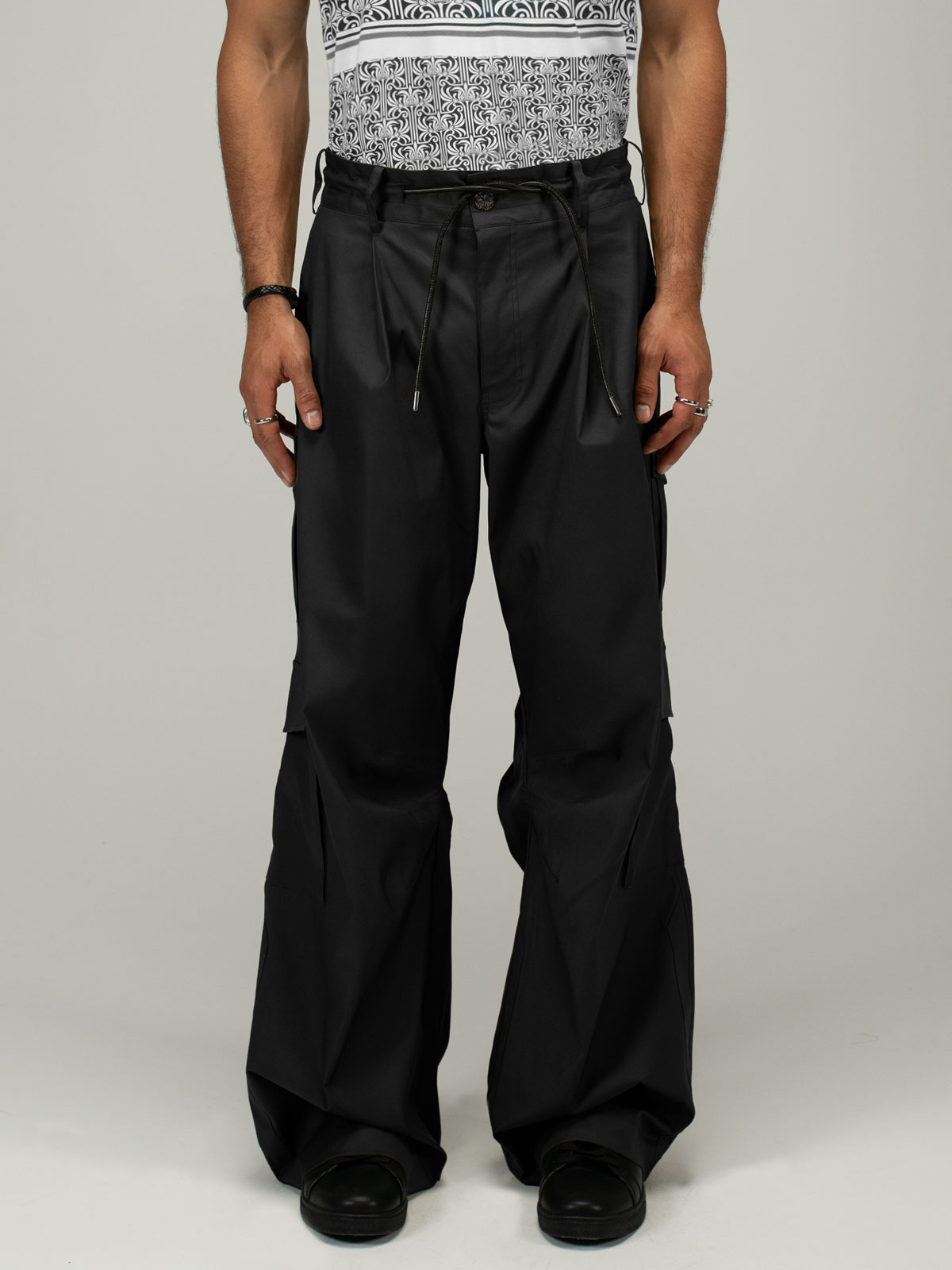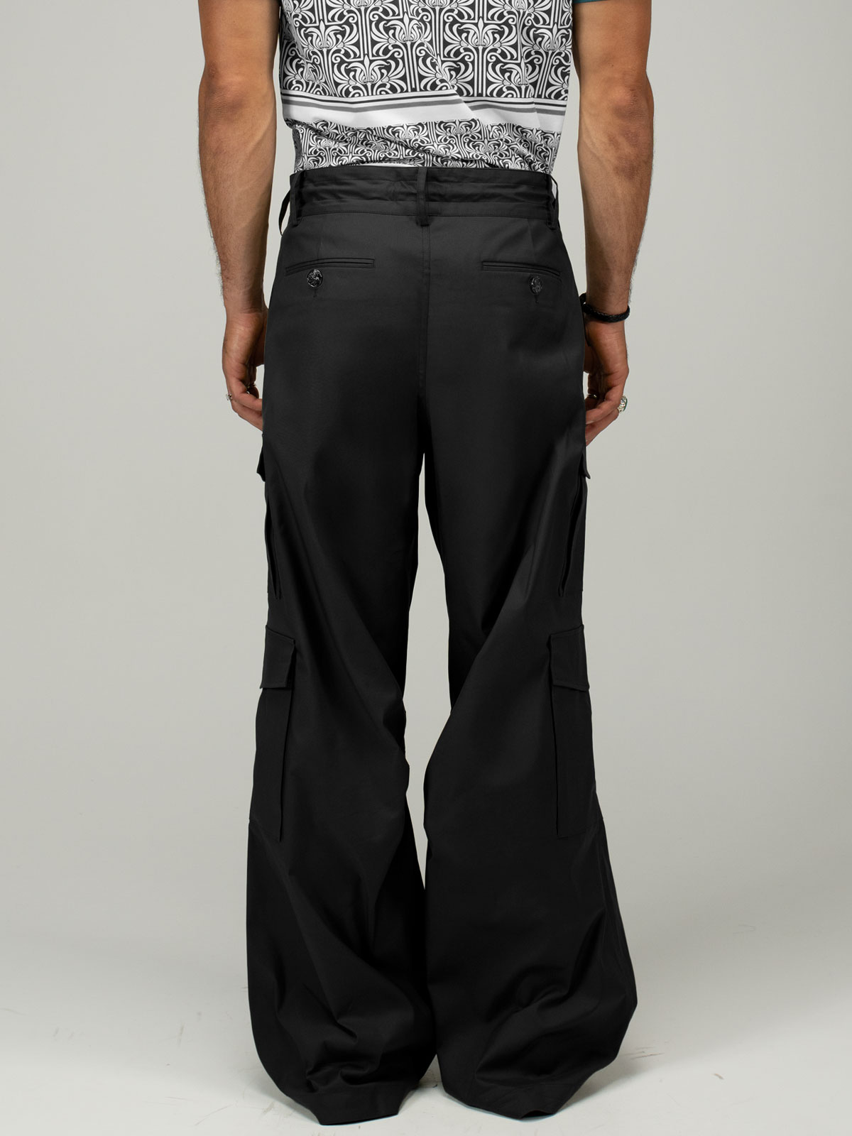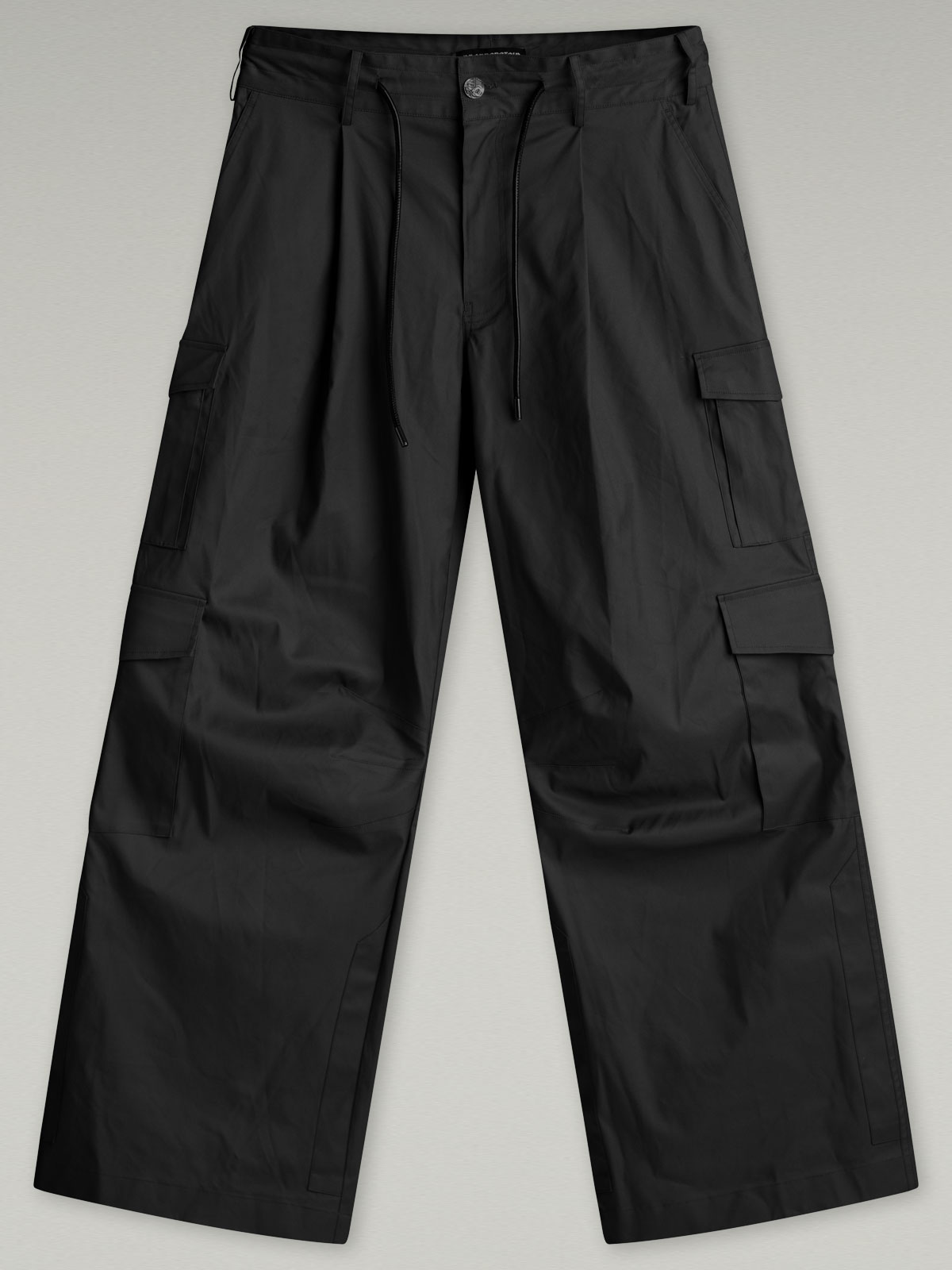 Effortless in soft cotton canvas, these easy-fit cargo pants offer a relaxed, baggy silhouette designed for ultimate comfort. Featuring a classic button-up closure paired with a luxe leather drawstring, they balance utility and street-luxe ease with every move.