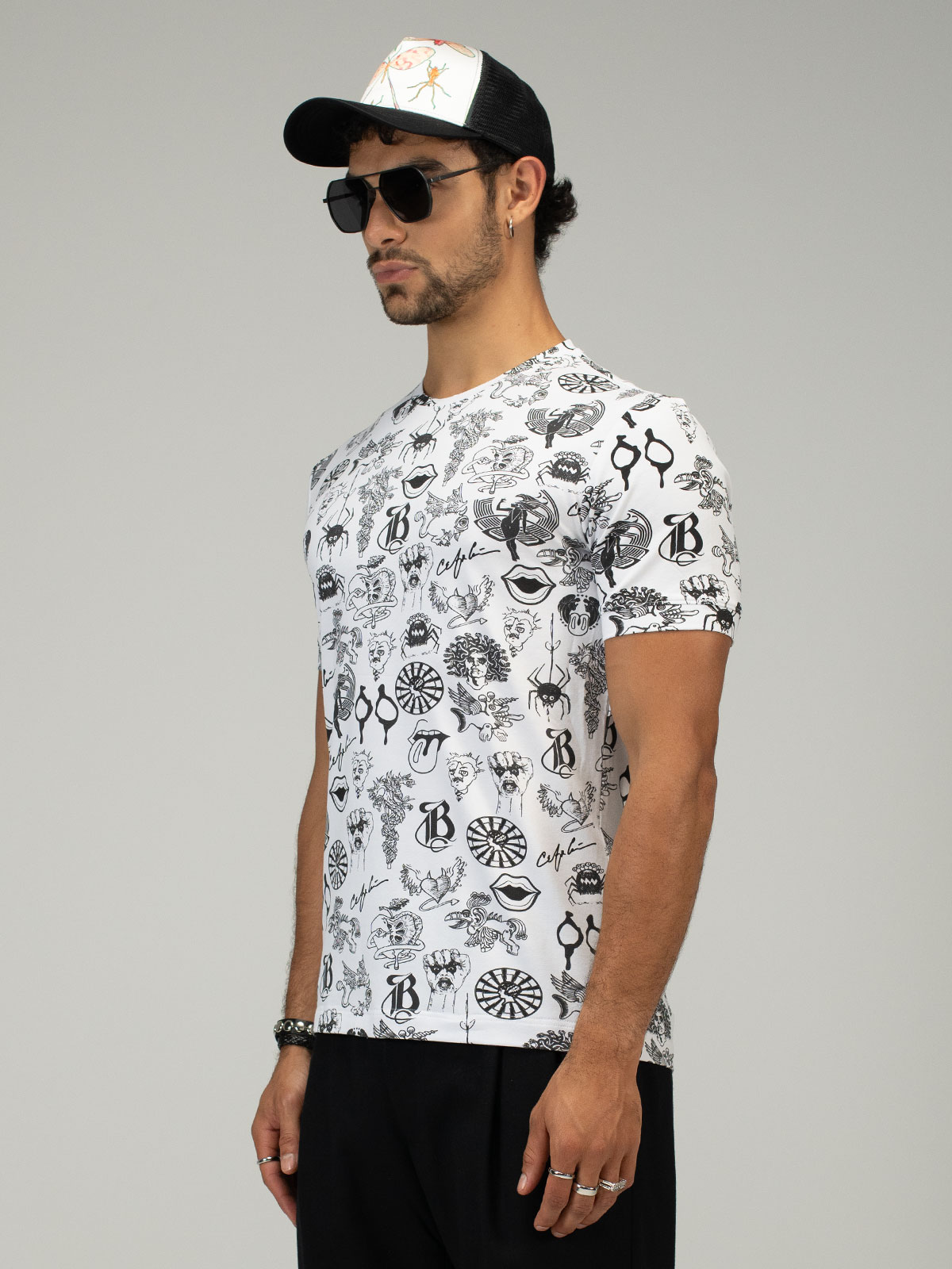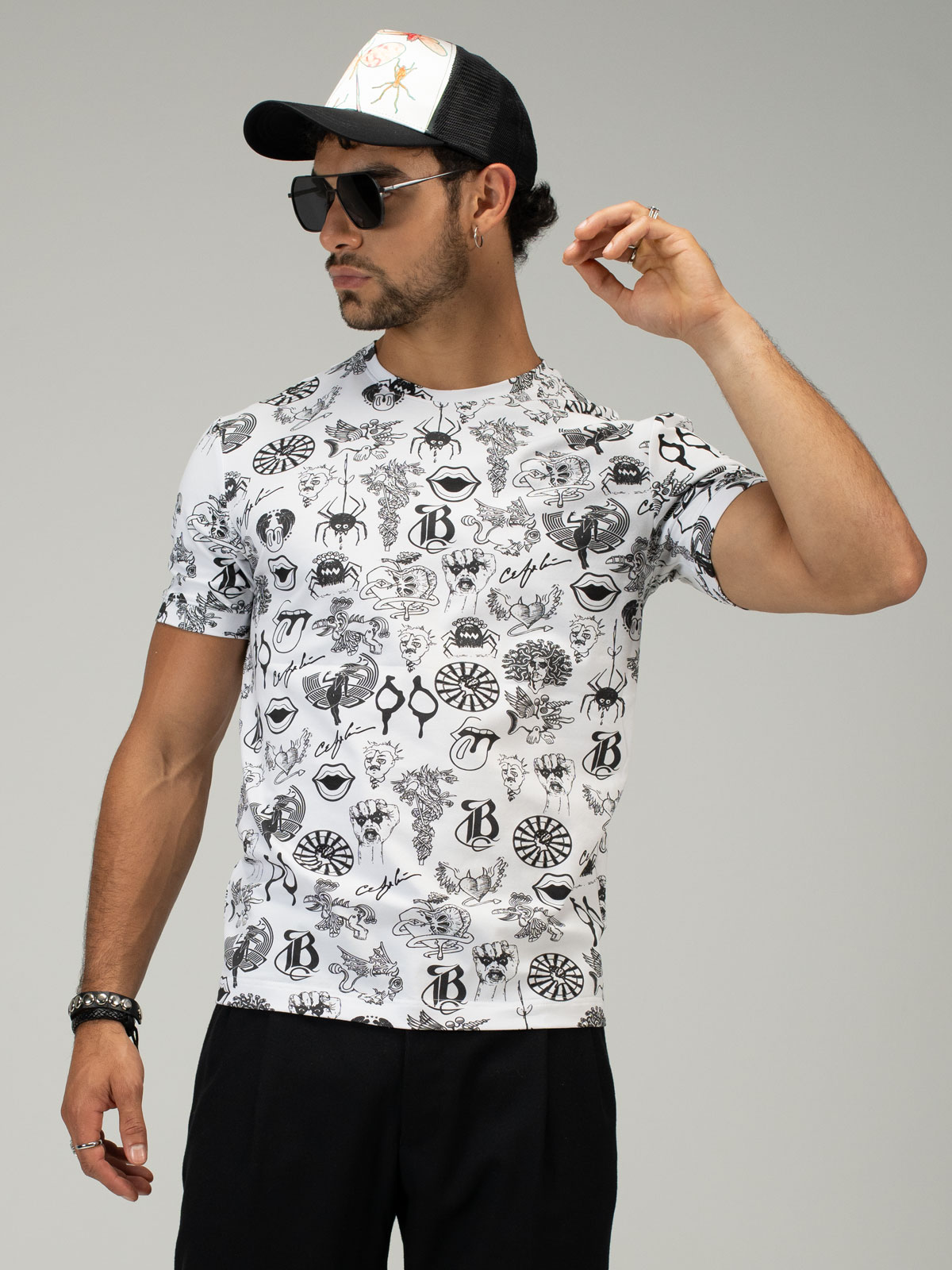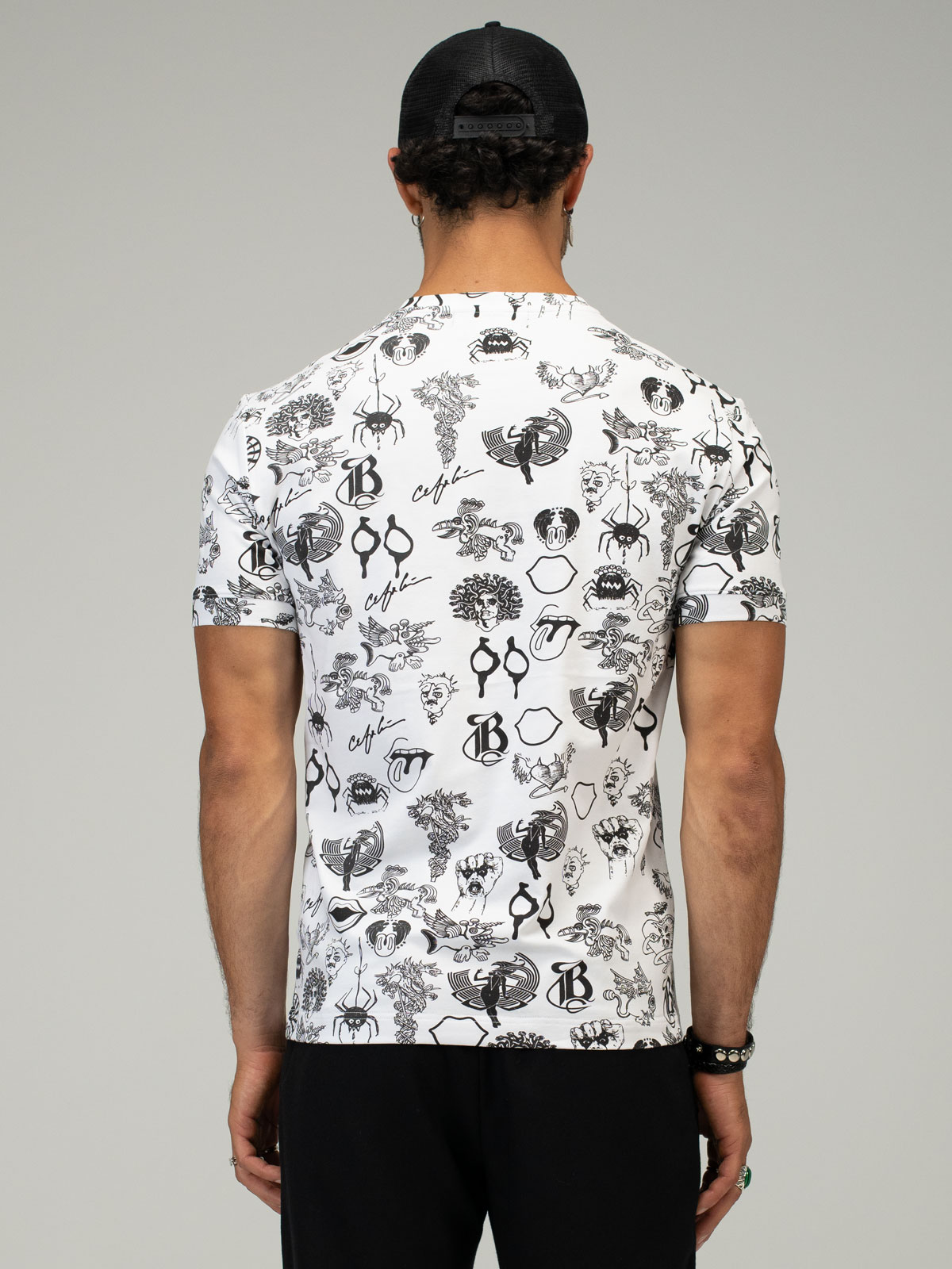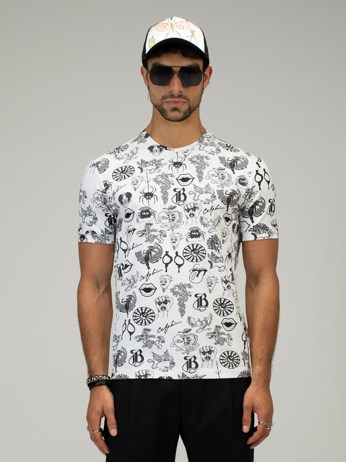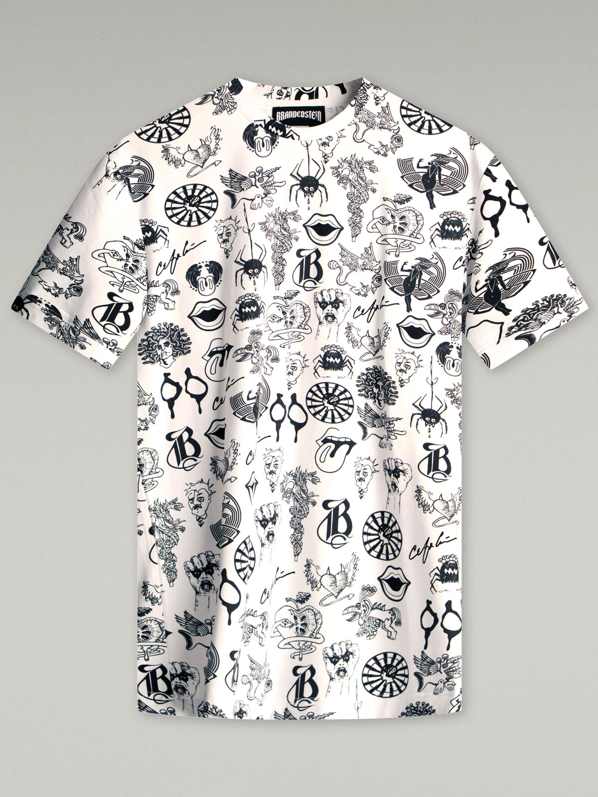 This regular fit crew neck tee combines impeccable craftsmanship with full-fabric art prints, accented by patches featuring artwork from some of the most iconic rock albums of all time. Each detail tells a story, making it a bold tribute to rock history crafted for the style-conscious and music-obsessed.