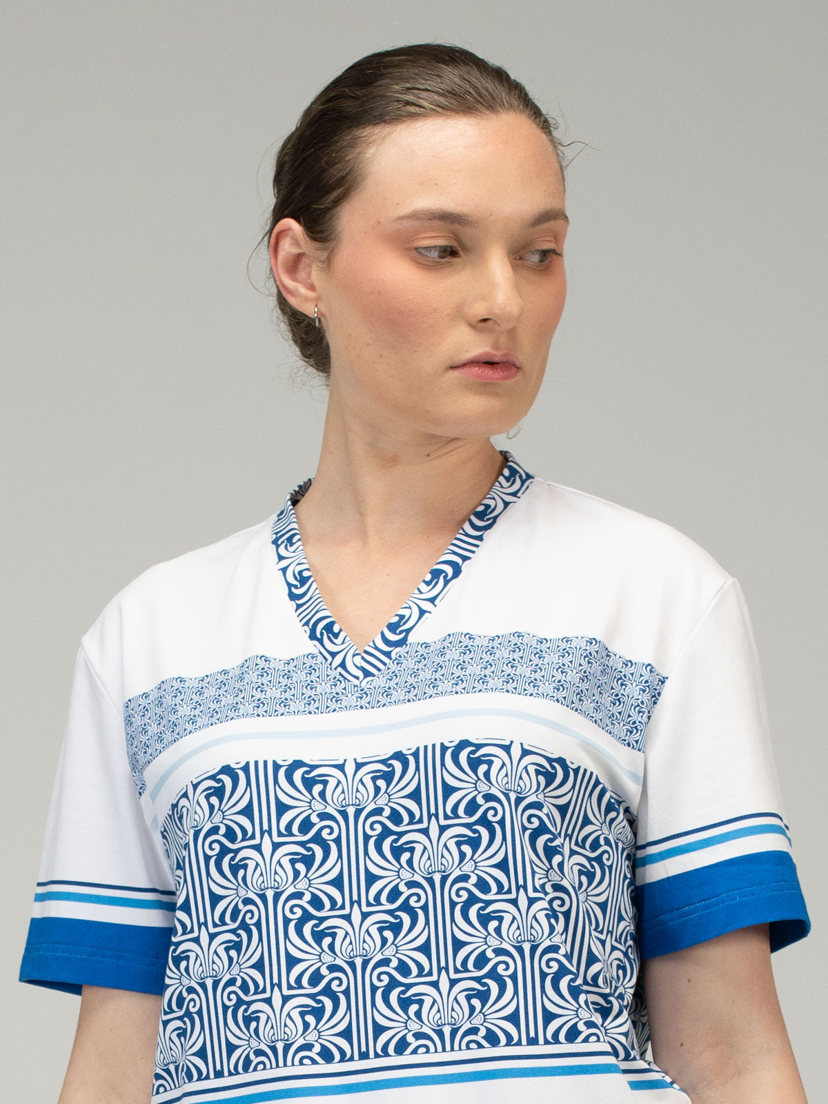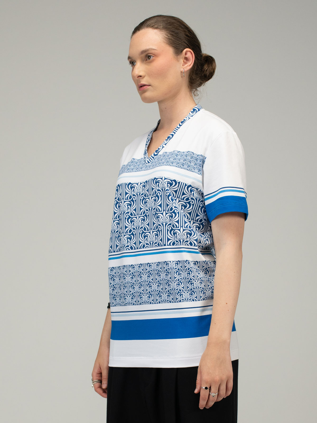 V neck Tshirt Stripe Pattern Blue