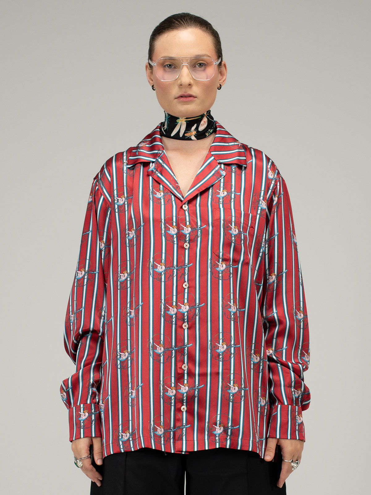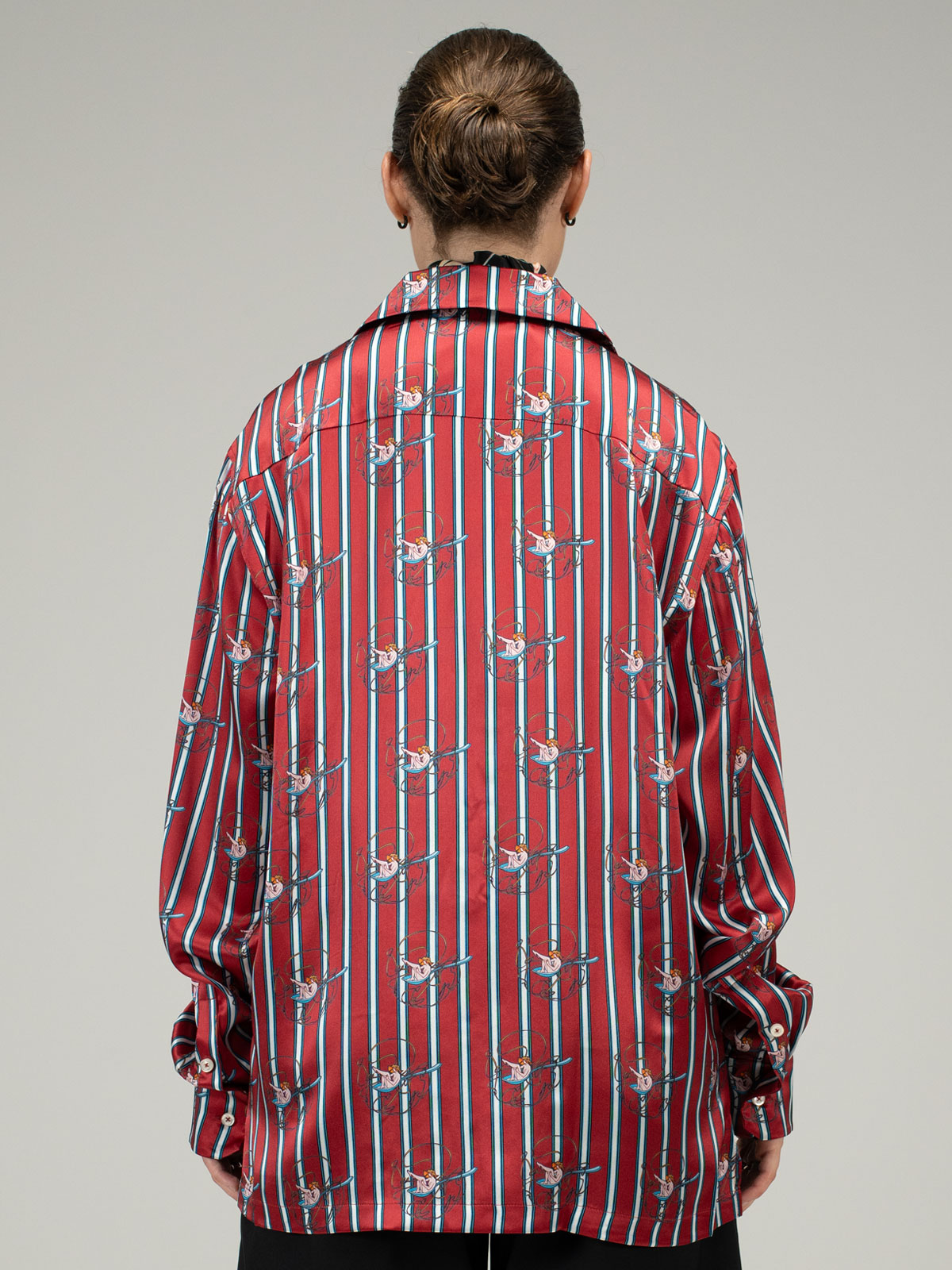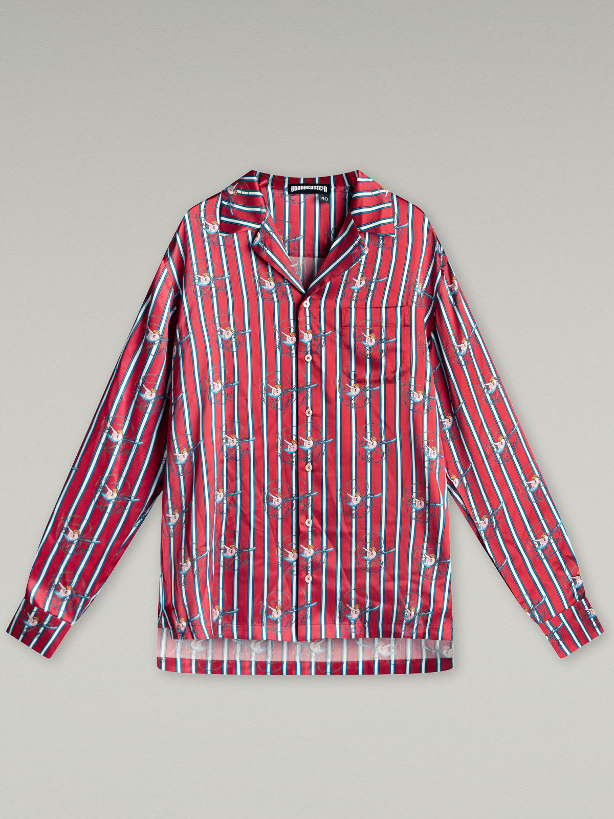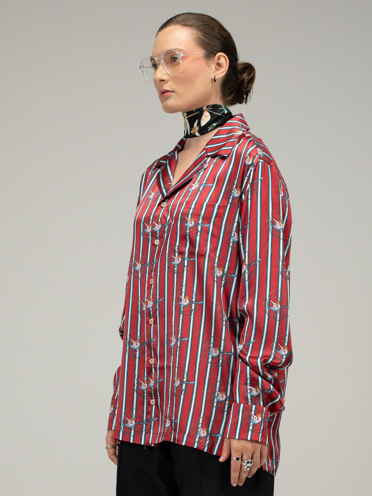 Long Sleeve Hawaiian Shirt Burgundy Spoon and Stripes