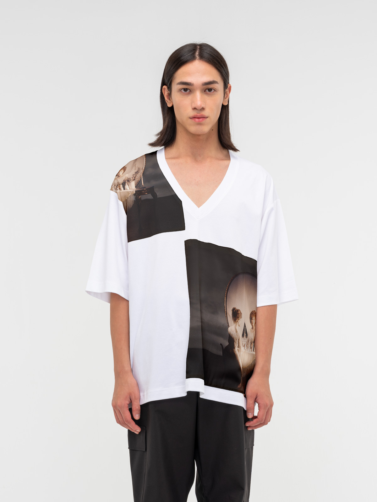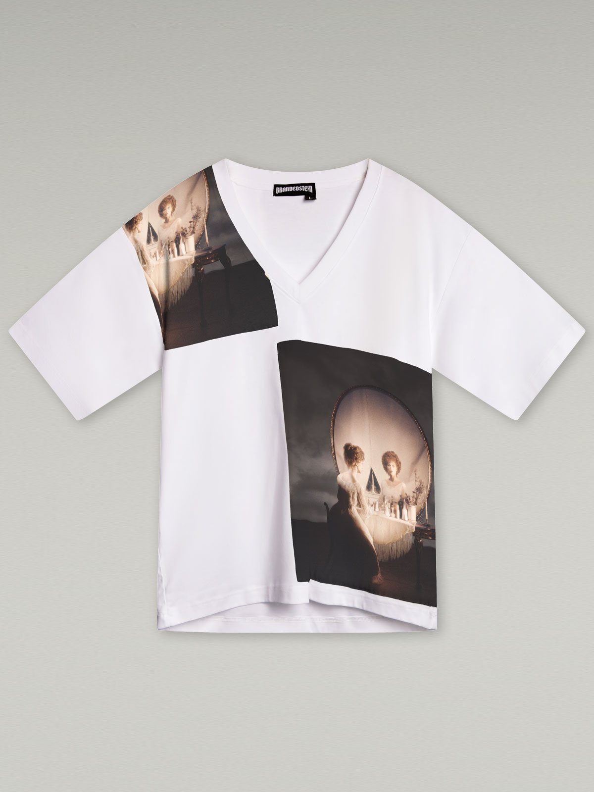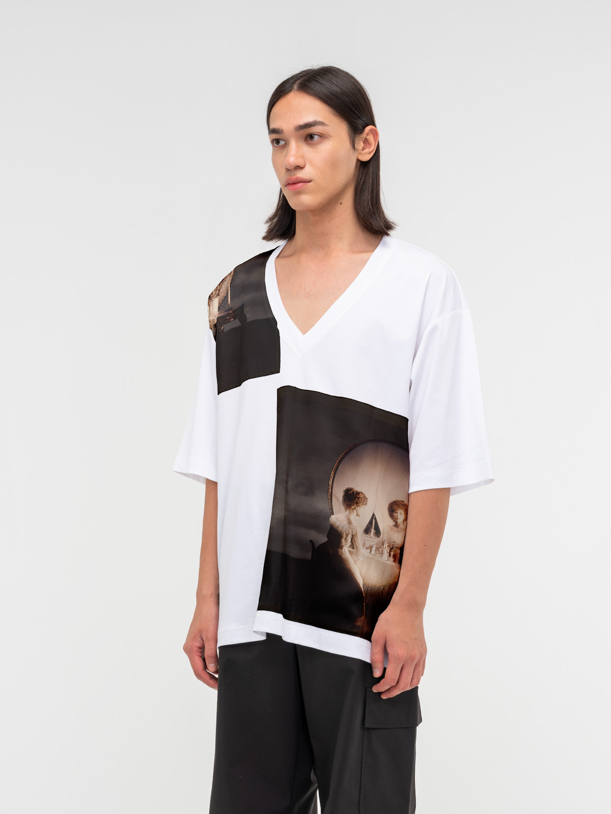 This luxurious V-neck t-shirt redefines wearable art, crafted from the finest cotton jersey and elevated with four silk panels showcasing iconic rock ‘n’ roll artwork. Each panel tells a unique story, capturing moments of music history and cultural significance, printed with exquisite detail and carefully stitched into place for a seamless blend of artistry and craftsmanship. A celebration of rebellion, creativity, and timeless style, this design transforms a classic staple into a collector’s statement of sophistication.