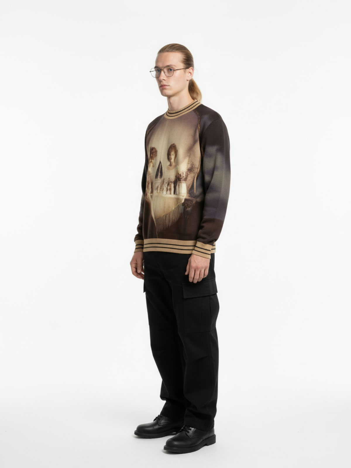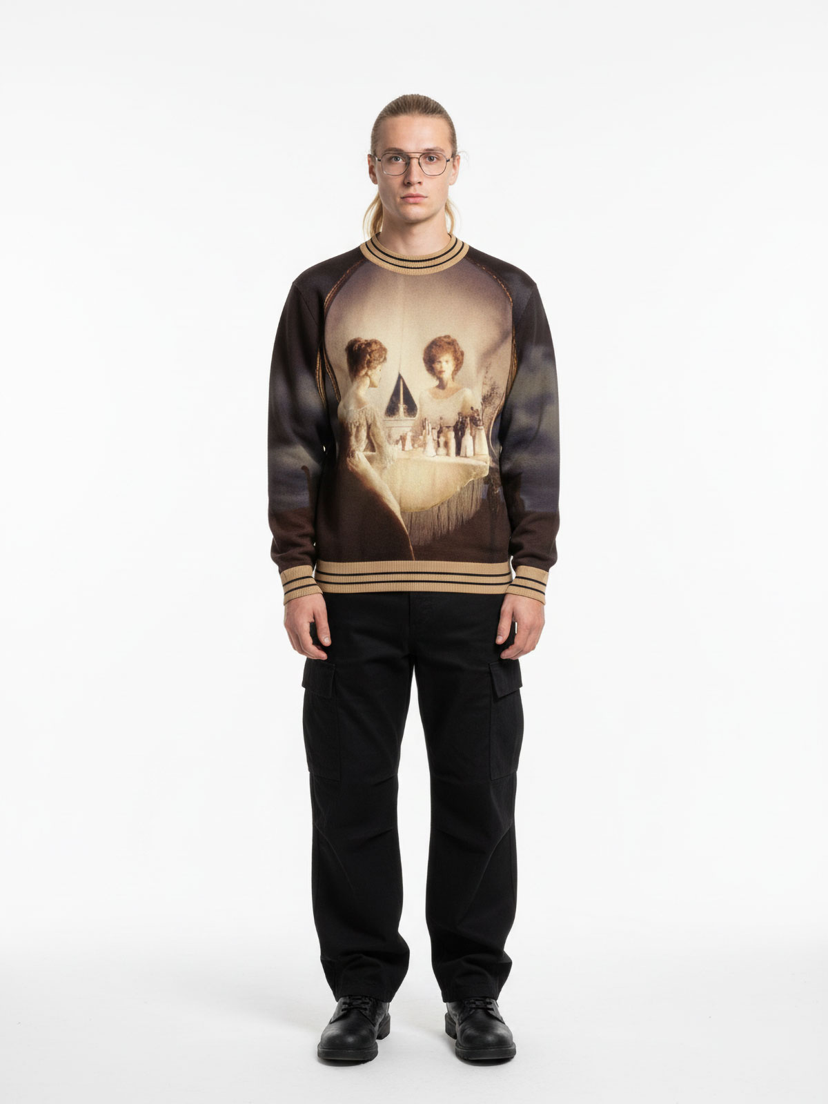 This sweater is a showcase of luxury craftsmanship—featuring premium construction with refined cotton ribbing at the cuffs, waistband, and collar. The fabric itself is a canvas, printed with historic hand-painted artwork once featured on iconic rock album covers. A bold fusion of music legacy and elevated design.